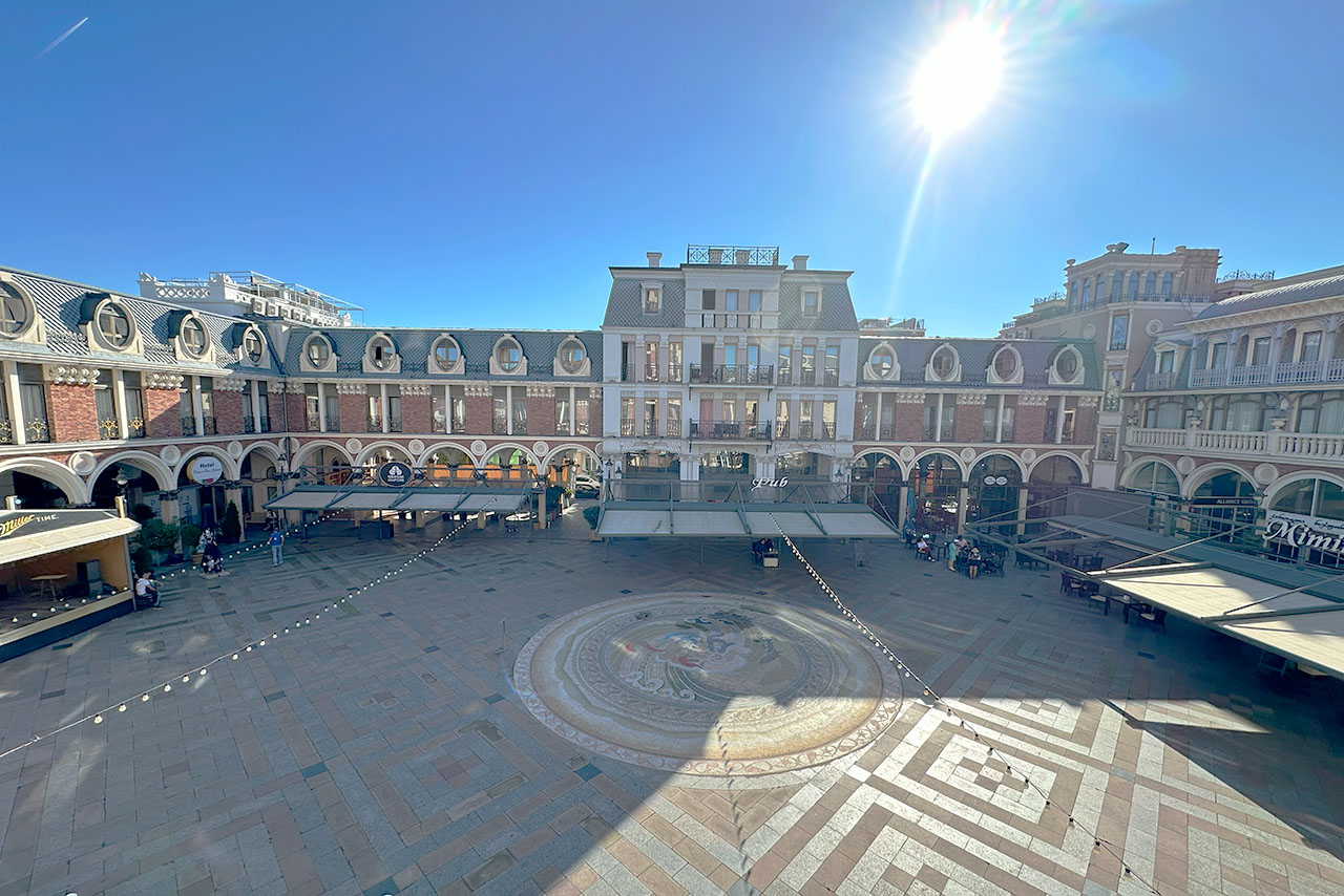 Посередине площади расположена огромная мозаика, о ней мы расскажем отдельно.