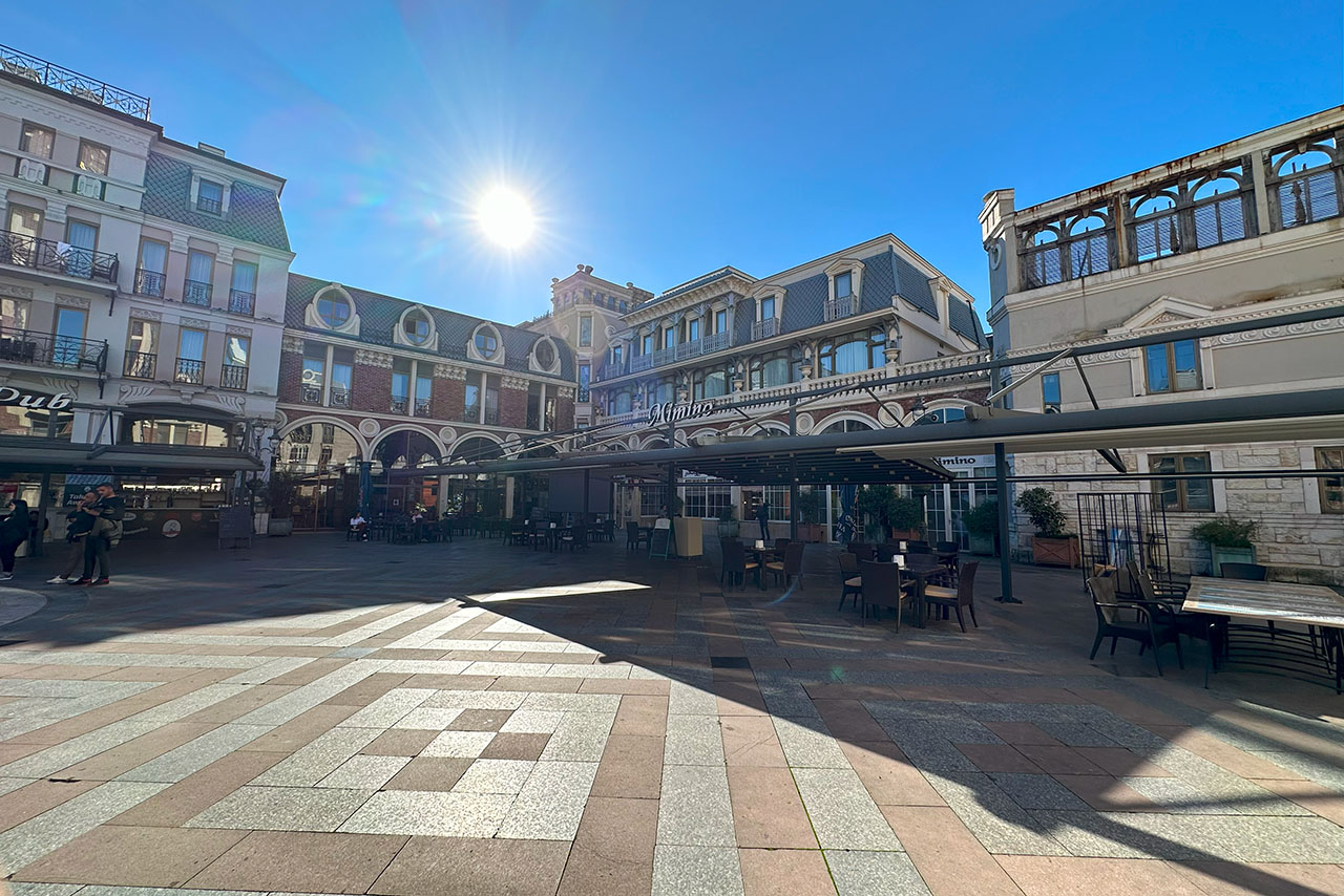 Большую часть занимают столики кафе и ресторанов, расположенных по периметру. И в туристический сезон многие из них заполнены почти полностью.